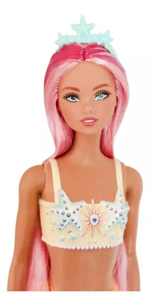 As crianças vão adorar inventar histórias mágicas sobre o mar com as suas belas bonecas de sereia da linha Barbie Fantasia! Cada sereia tem um corpete inspirado em concha, cauda esculpida e cabelo colorido adornado com acessórios detalhados, proporcionando uma experiência de brincadeira encantadora. Ideal para crianças a partir de 3 anos, essas bonecas estimulam a imaginação, a criatividade e o desenvolvimento de habilidades sociais ao criar aventuras aquáticas. As crianças podem colecionar uma variedade de sereias e explorar infinitas possibilidades de histórias no fundo do mar. Cada produto é vendido separadamente, sujeito à disponibilidade. As bonecas Barbie não nadam nem ficam em pé sozinhas. Atenção: Sortimento, cores e modelos podem variar sem opção de escolha. Acompanha 1 Boneca.