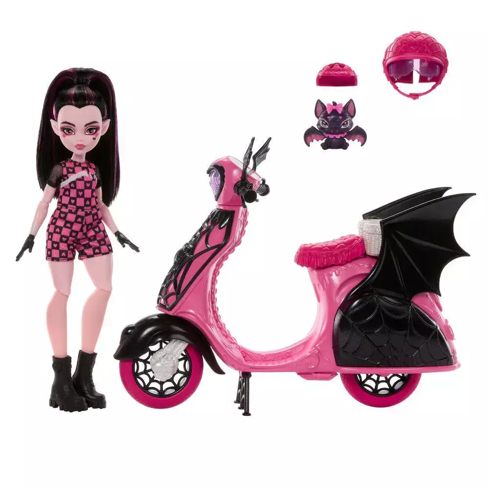 Prepare-se para acelerar com a boneca mais glamourosa de Monster High! Chegou a incrível Draculaura com sua Vamptastic Scooter!